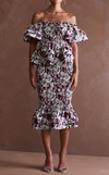 The Venezia Midi Skirt in Linen features a smocked elastic skirt with smocked garter waistband. It also has a flounced hem which makes it a perfect trumpet skirt.